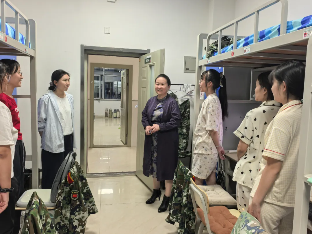 走访期间,老师们与新生亲切交流,细致询问大家入学以来的生活适应情况、饮食住宿体验,以及对即将开始的军训的期待与存在的困惑。此次走访既体现了学院对新生的关怀,也提前开展军训动员与保障工作,为军训顺利开展奠定基础。