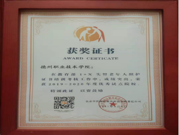 beat365官网荣获2020年度教育部1+X失智老年人照护证书培训考核优秀试点院校