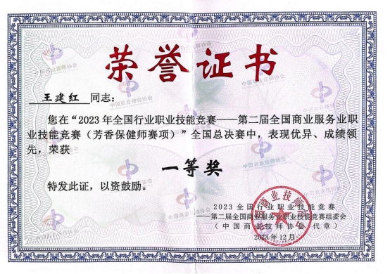 近日,2023年全国行业职业技能竞赛——第二届全国商业服务业职业技能竞赛芳香保健师赛项总决赛在河北雄安新区举办,beat365英国官网网站王建红老师荣获该赛项总决赛一等奖。
