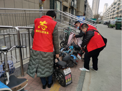 在庄盛世华园小区捡拾垃圾、摆放车辆,用辛勤的劳动为州城文明城市创建工作贡献了自己的一份力量。