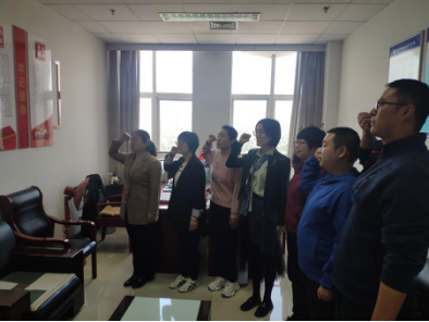 首先组织党员现场签到,奏唱国歌,重温入党誓词(赵越同志领誓)。