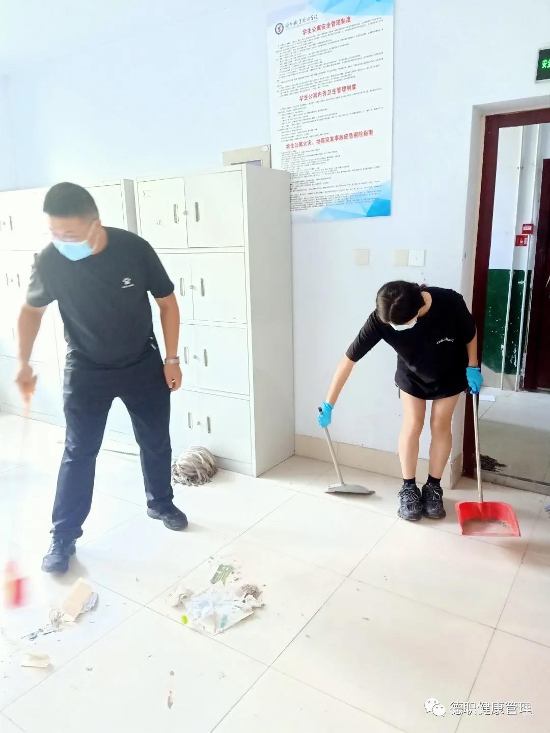 为了给2021级新生营造温馨的生活环境,会后,全体党员走进学生宿舍,和助理辅导员们一起进行卫生大扫除。扫地拖地、清扫垃圾,不放过每个角落和细节,门框和玻璃、桌底和卫生间,平日无暇顾及的卫生死角在本次清扫中无处遁形。撸起袖子加油干,忙碌的身影和劳动后满足的笑容就是最靓丽的风景线。