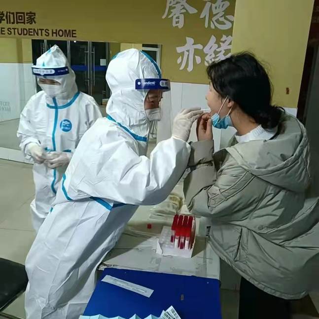 beat365英国官网网站有护理资质的6名大学生主动请缨,穿上“隔离服”化身“大白”,与医务人员一起,战斗在核酸检测第一线。他们每天中午12点到达现场,整理抽检用具,和“红袖章”一起提醒每一位前来做核酸检测的师生佩戴好口罩,出示预约码,保持一米间隔,并提前扫码,有序完成采样,保障了核酸采样工作有序进行。