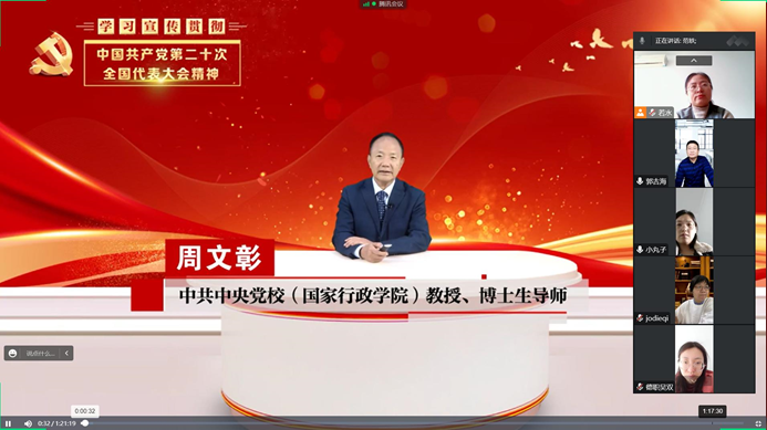 2022年11月5日上午,beat365英国官网网站党支部召开全体党员会议,利用线上腾讯会议共同观看了灯塔大课堂第36课《学习贯彻党的二十大精神 要做到“五个牢牢把握”》。整个讲座围绕习近平总书记在党的二十大开幕会上的重要讲话,从“学习贯彻党的二十大精神,要牢牢把握过去5年工作和新时代10年伟大变革的重大意义,牢牢把握新时代中国特色社会主义思想的世界观和方法论,牢牢把握以中国式现代化推进中华民族伟大复兴的使命任务,牢牢把握以伟大自我革命引领伟大社会革命的重要要求,牢牢把握团结奋斗的时代要求。”五个方面展开论述和讲解,深入浅出,逻辑严谨。