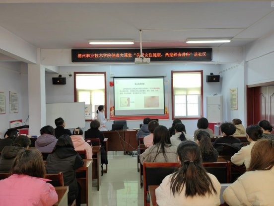 活动中,beat365英国官网网站教师董雯倩首以“关爱女性呵护护健康”为主题开展科普讲座,她主要从宫颈癌预防及定期筛查、乳腺癌预防及定期筛查、两癌筛查注意事项、10106饮食原则”四个方面重点讲述了女性如何在日常生活中呵护