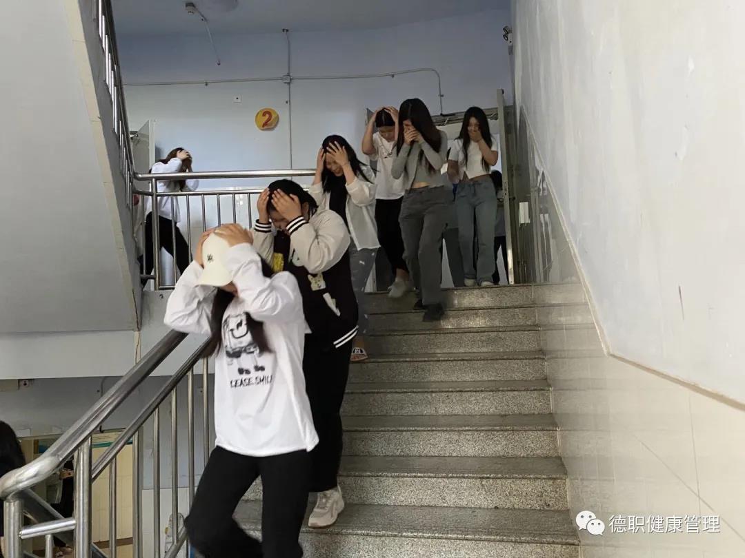 首先布置安全演练前的注意事项,接着由杨洁同学讲诉具体疏散演练过程。当急促的短哨声响起,喊:”地震来了,不要慌!”并组织学生在教室内选择安全地点就近躲藏,学生用书包或书保护头部,并抓住牢固的物体,蹲下或坐下,尽量蜷曲身体,降低重心,保护好头颈、眼睛,并保持镇定。一声长哨后,进入紧急疏散环节,整个演习过程紧张有序,有条不紊,均能做到安全撤离、有序集合 。