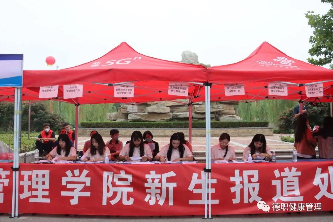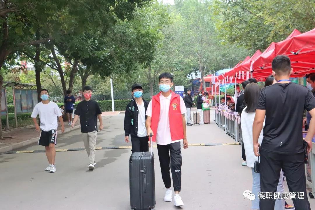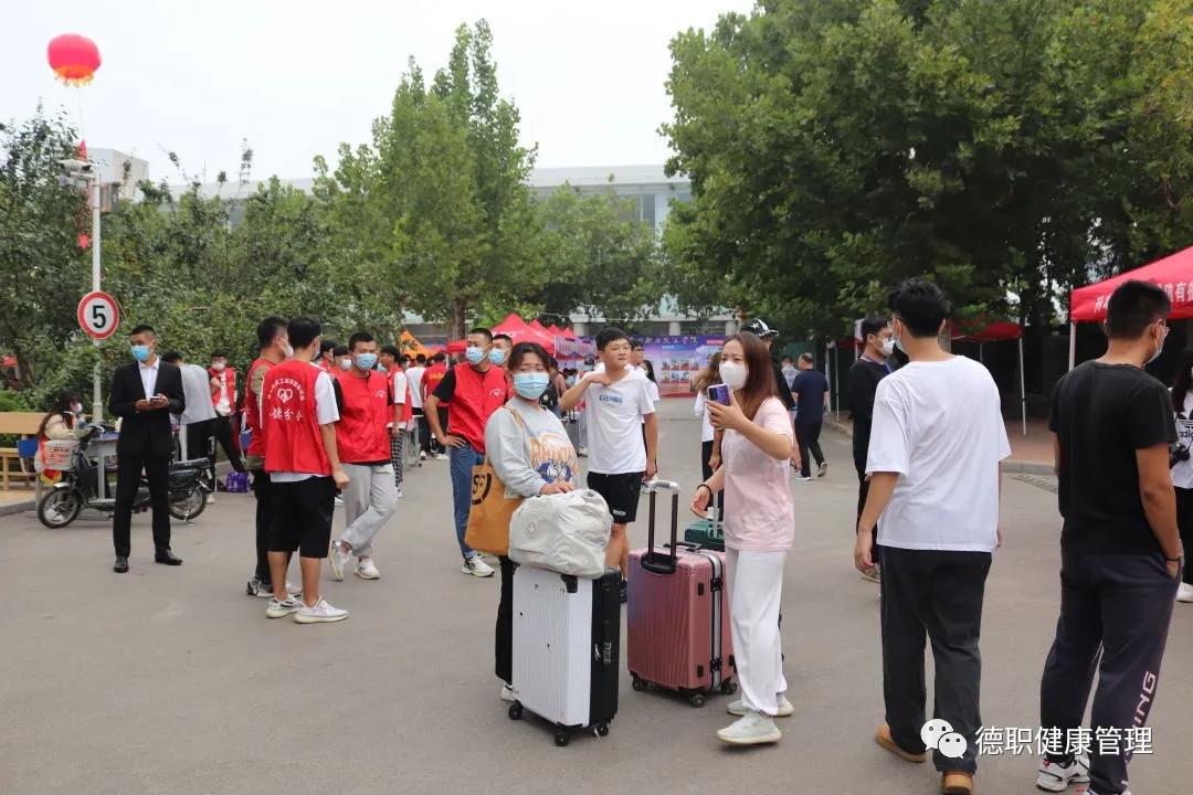 在迎新现场,众多的迎新志愿者微笑着迎上去:“你好”,“欢迎来到德州职院”并拿起沉重的行李向报到处走去。
