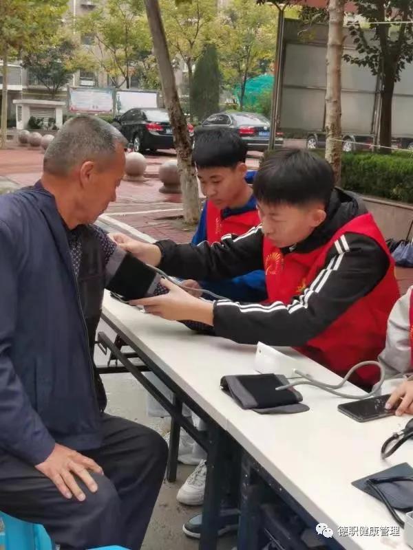 beat365官网志愿者发挥专业优势,为社区老人测量血压,发放健康手册,讲解健康知识。