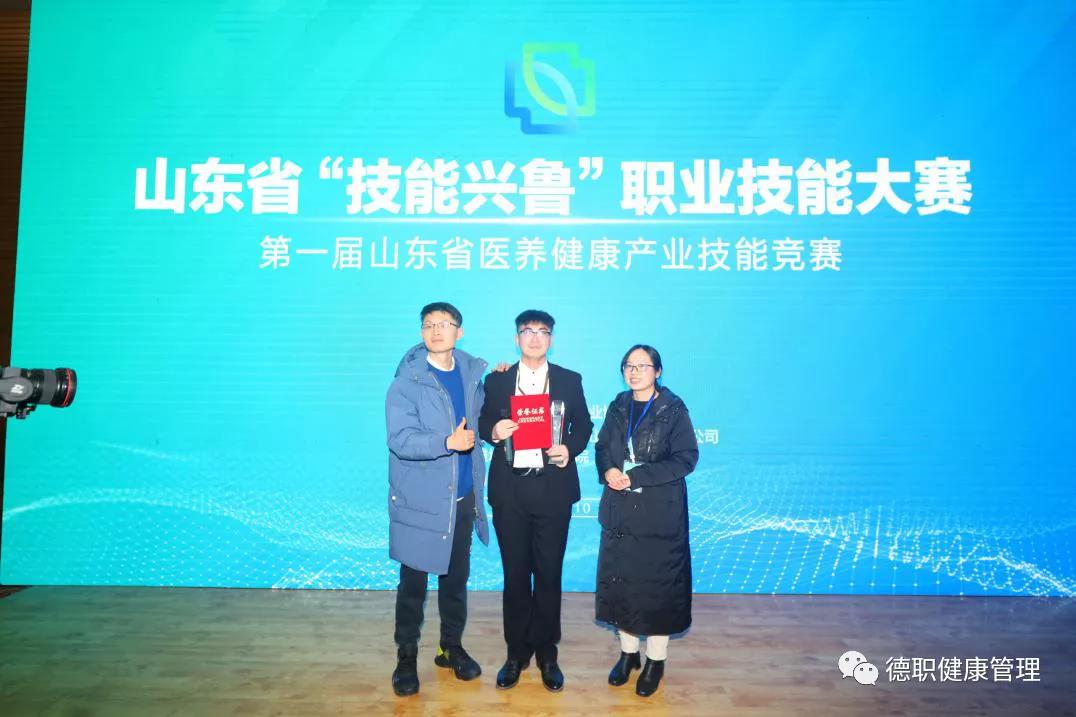 12月10日,山东省“技能兴鲁”职业技能大赛——第一届山东省医养健康产业技能竞赛“健康管理”赛项在济南举行。beat365英国官网网站李娜老师在比赛中发挥稳定,沉着应战,荣获教师组全省第3名二等奖的好成绩,吕志伟、李娜老师指导的2021级健康管理专业张跃骜、陈晓雪两位同学,分别荣获学生组全省第1名一等奖、第5名三等奖的好成绩。