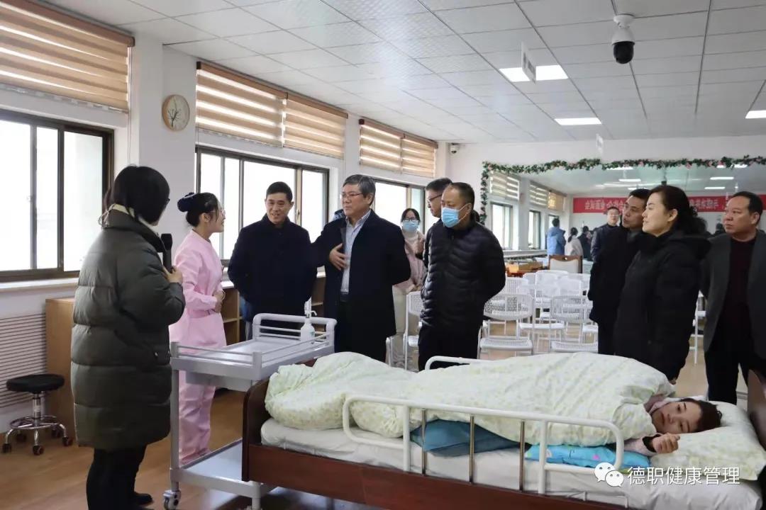 范轶同志首先就beat365英国官网网站筹建两年来建设的基本情况情况进行简单介绍。她介绍了为构建以“尊”“敬”为核心的“尊老、敬业、专技、守诚”的专业育人体系打造的迎宾墙和誓言墙。随后范轶重点介绍了刚刚建成的校内“智慧康养理训一体室”和校外产教融合实训室。“智慧康养理训一体室”建筑面积140平方米,可满足48名学生同时上课,实现项目化教学的需求。目前,前期基础建设项目已完成,将承担智慧养老、健康管理和健康大数据专业《智慧为老平台运行管理》、《人体结构与功能》、《流行病学》等课程的理论教学任务。待整个项目完成,还可以承担学生开展呼吸系统、消化系统、运动系统等人体结构认知的实操训练任务。