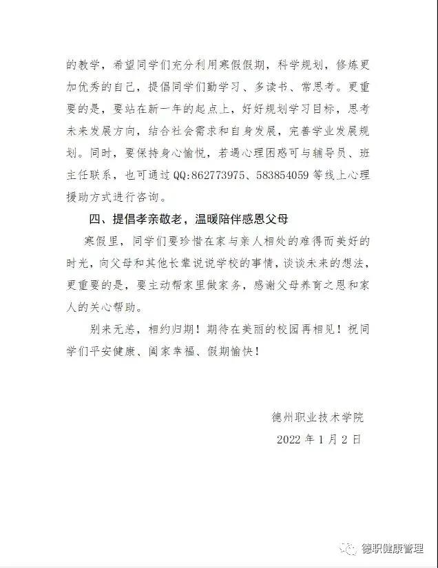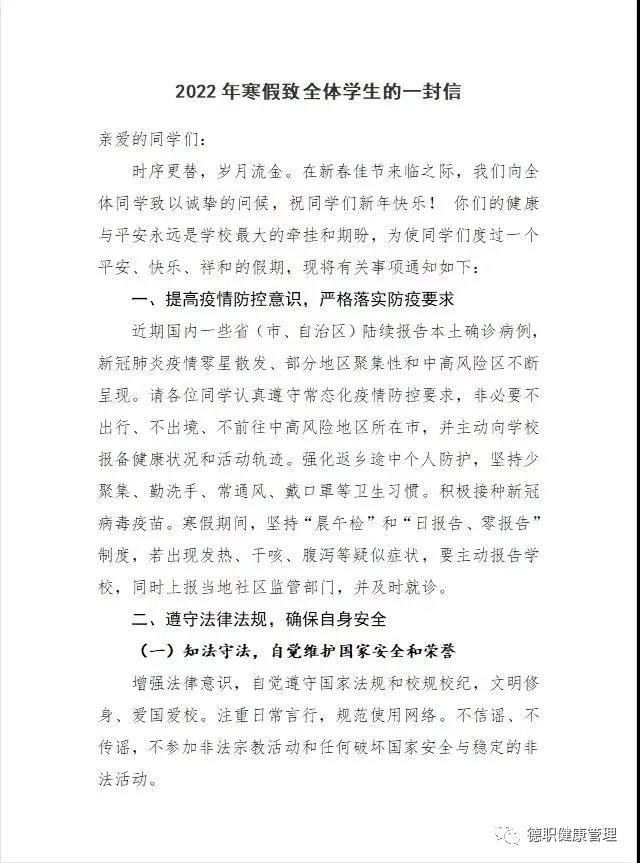 2022年寒假致全体学生的一封信