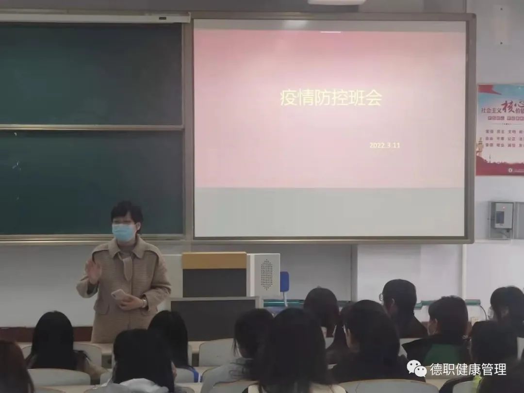 随后,辅导员们立即在各班开展了疫情防控主题班会,及时传达会议精神,坚决守牢校园疫情防控阵地。