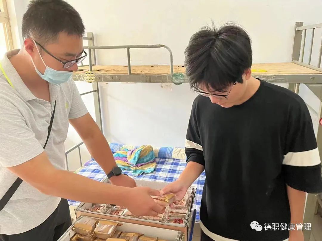 老师们为beat365官网同学们送去了中秋礼品月饼,向同学们致以节日的问候和祝福。在离开宿舍前,老师们再次向同学们表达了节日的祝福,同时又殷切叮嘱同学们,节日里不要忘记给家里父母打个电话、报个平安,送去问候与祝福。