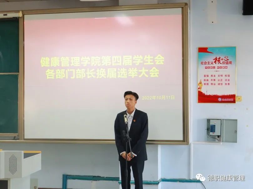 会前,路老师对参加换届竞选的同学提出了几点希望和要求,一是要工作严谨,履职尽责,当好老师与同学们的桥梁和纽带。二要提升自身能力,通过学习、活动和实践,在工作中不断提升自身管理能力,尽快成长起来。三要勤于学习,学生的第一要务就是学好知识,提升本领,学生干部除了完成工作任务外,还要努力学习,成为同学们的典范。四要顾全大局,工作中要听从指挥,服从安排,团结协作,为同学们服好务。