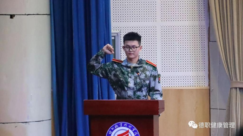 最后,全体新生起立,在新生代表孟祥旭同学的带领下,庄严宣誓,“我自愿为人民健康事服务,崇尚科学,传承博爱。遵守行为规范保守患者秘密;佑护生命尊严,维系健康之美……”