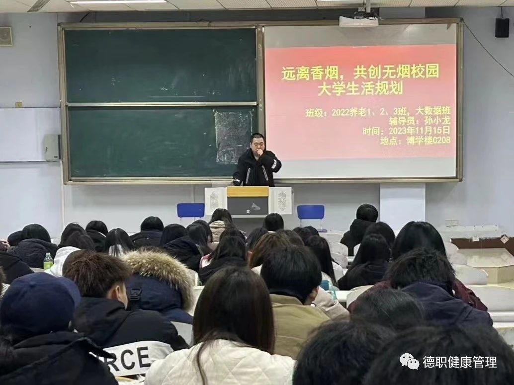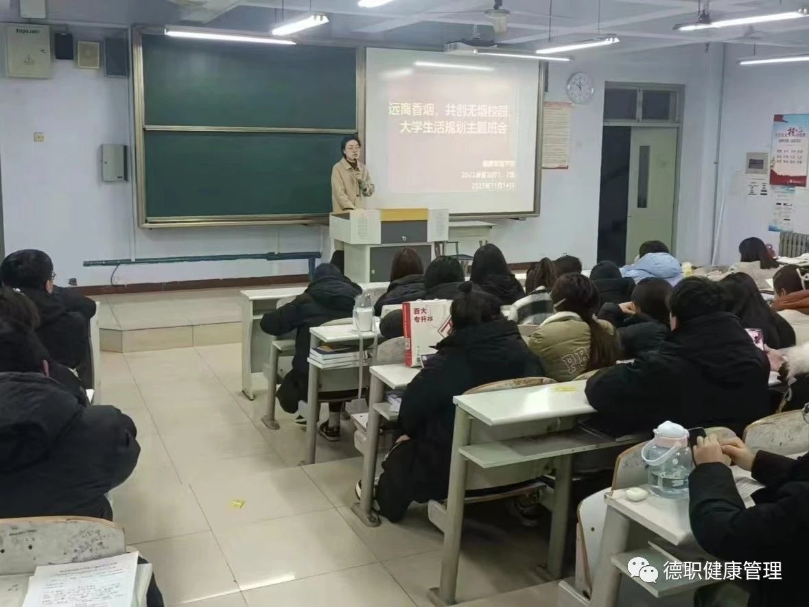 为了加强对大学生的健康教育,提高学生对吸烟危害的认识,养成良好文明的生活习惯。宣传吸烟的危害性,提高广大学生禁烟的自觉性,提升大学生综合素质,为学生营造良好的学习和生活环境。11月15日beat365官网组织各班开展《远离香烟,共创无烟校园》主题教育班会。