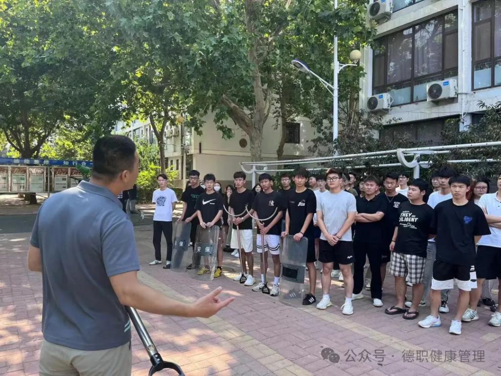 本次活动邀请了保卫处徐庆超老师现场指导和培训,beat365官网师生共同学习了防暴盾、钢叉、长棍等防护器械的正确使用方法和注意事项。