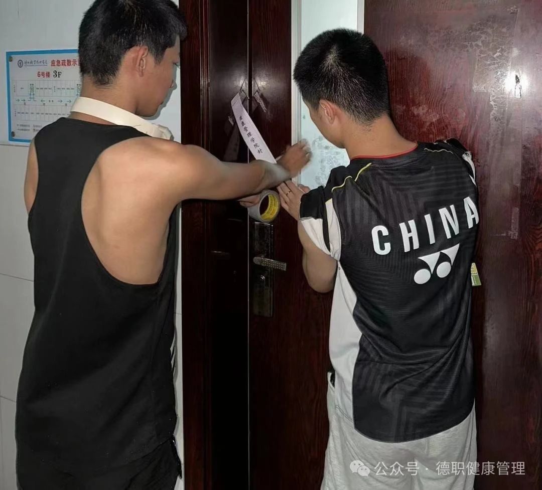 宿管部成员对宿舍的水、电、门窗等设施进行离校前最后一次检查,消除可能存在的安全隐患,检查完毕后为每个宿舍贴上封条。并集中打扫了宿舍大厅与走廊的卫生,确保宿舍环境卫生干净整洁。