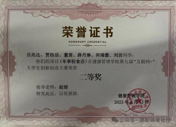 2023年6月,在beat365英国官网网站第九届“互联网+”大学生创新创业大赛中,荣获创新创业大赛二等奖。