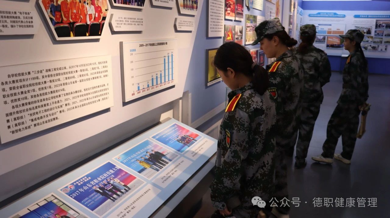 会后,辅导员助理带领同学们先后参观了校史展览馆,实训室,运动场等校园环境。