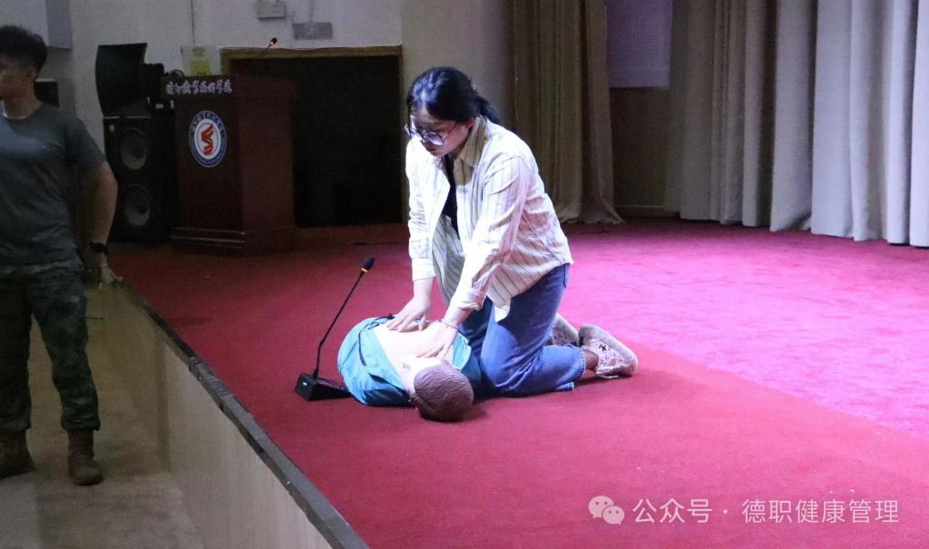 培训采取“理论+示范”的方式进行。培训中,董老师重点围绕心肺复苏基本方法、中暑、低血糖、肌肉痉挛应急救护原则、自动体外除颤器(AED)使用步骤等开展急救技能培训。示范结束后,学员们纷纷上手实操,熟悉急救流程,有效提高了突发事件应急处置能力。