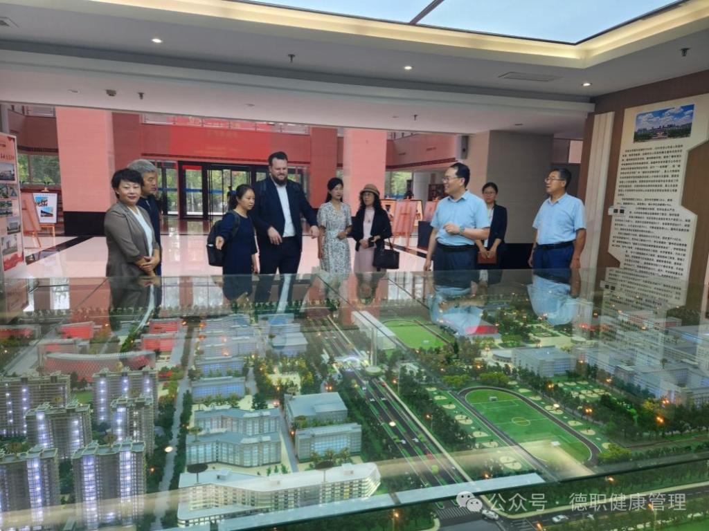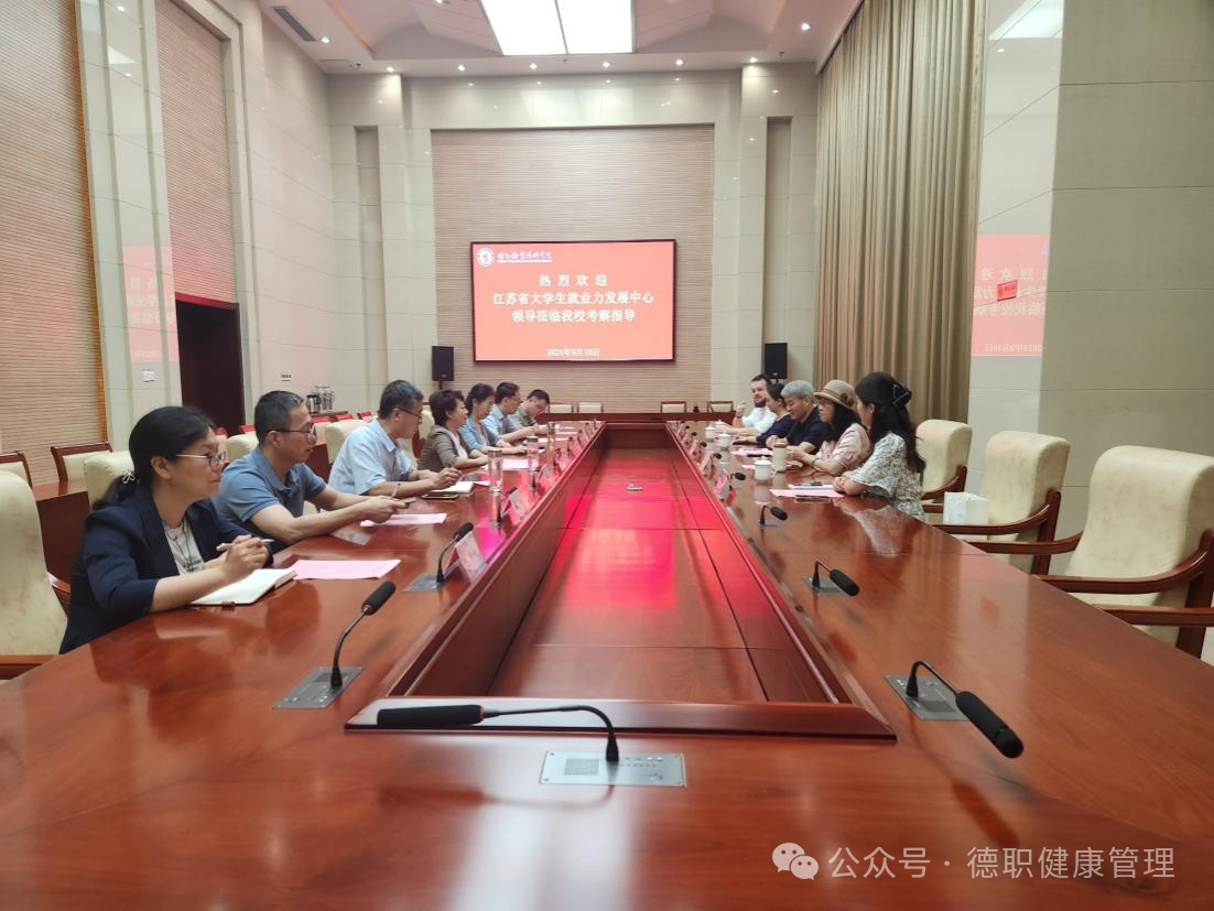9月18日上午 ,江苏省大学生就业力发展中心主任顾晓明、德国捷牧教育集团康养学院代表马文·史密茨一行5人,来beat365官网进行洽谈交流。党委副书记赵晓静、副院长刘文娟热情接待考察团一行,科技处、beat365英国官网网站相关领导参加了座谈交流。