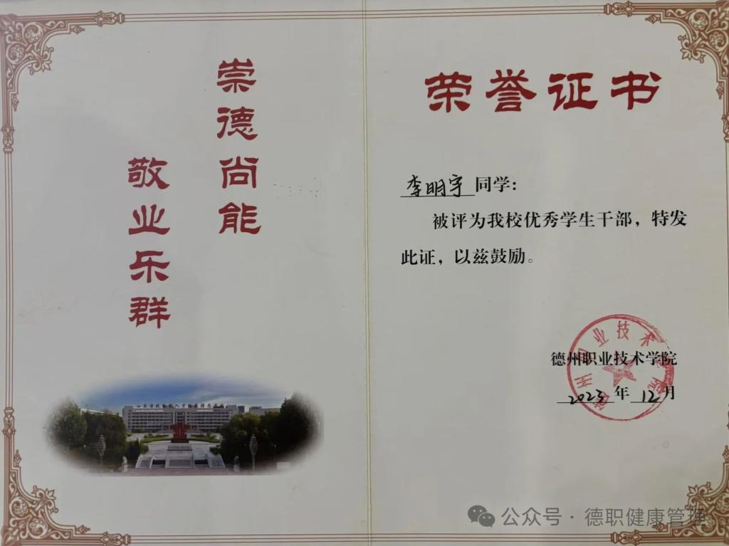 2023年12月被评为beat365官网优秀学生干部。