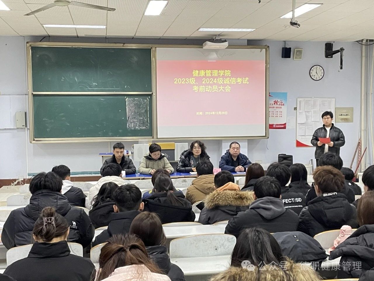 会议伊始,齐宁老师着重针对考试纪律提出要求,希望同学们诚信考试,严守考场纪律,不作弊、不抄袭,保持公平公正的竞争环境。接着,孙小龙老师就此次考试的考场安排以及考场卫生等方面对同学们提出了相应要求。最后,路遥老师进行总结发言,她希望同学们都能认真对待考试,并且预祝同学们在考试中斩获优异的成绩。