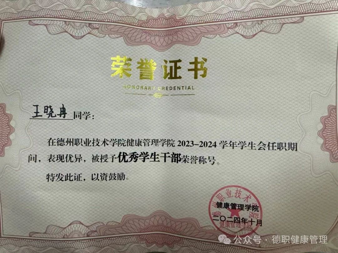 6.2024年10月,在beat365英国官网网站2023-2024任职期间,表现优异,被授予“优秀学生干部”荣誉称号。