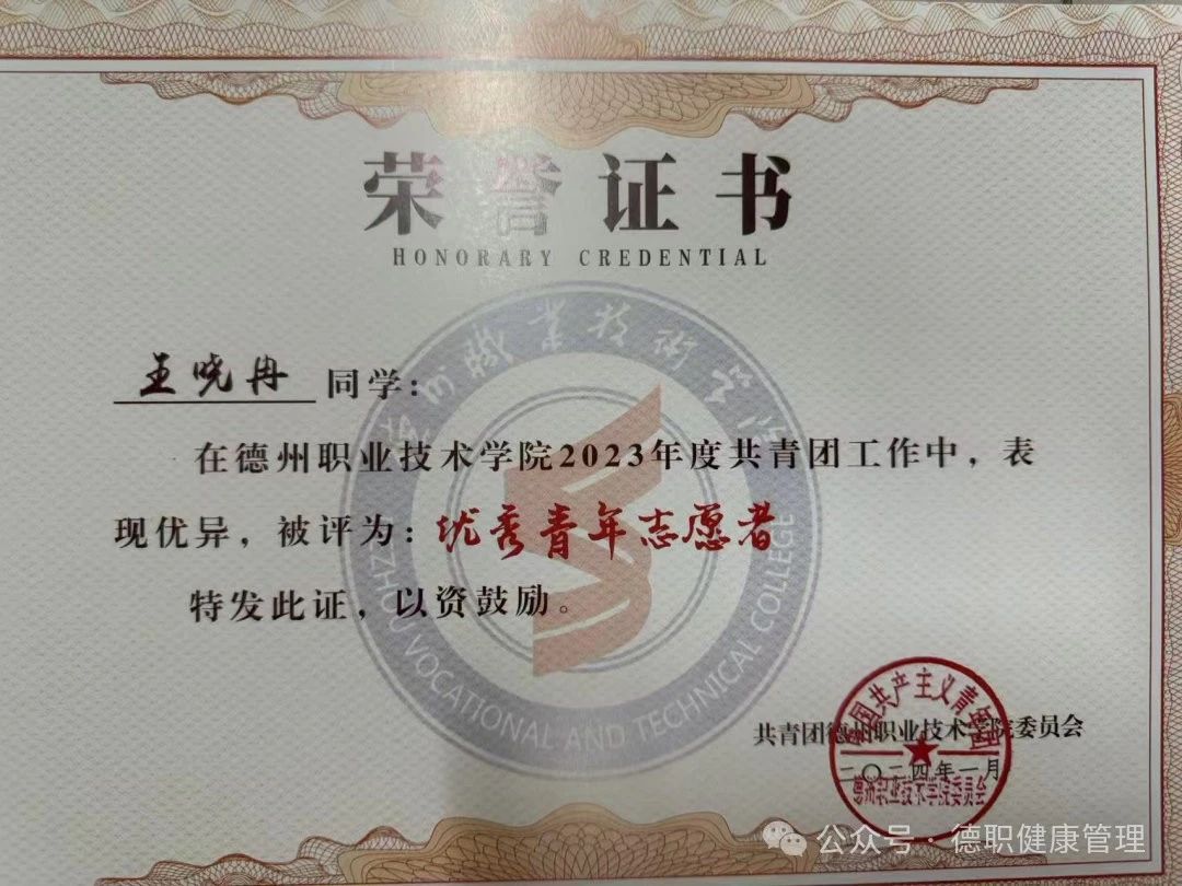 4.2024年1月,在校园十佳评选中荣获“优秀青年志愿者”称号。