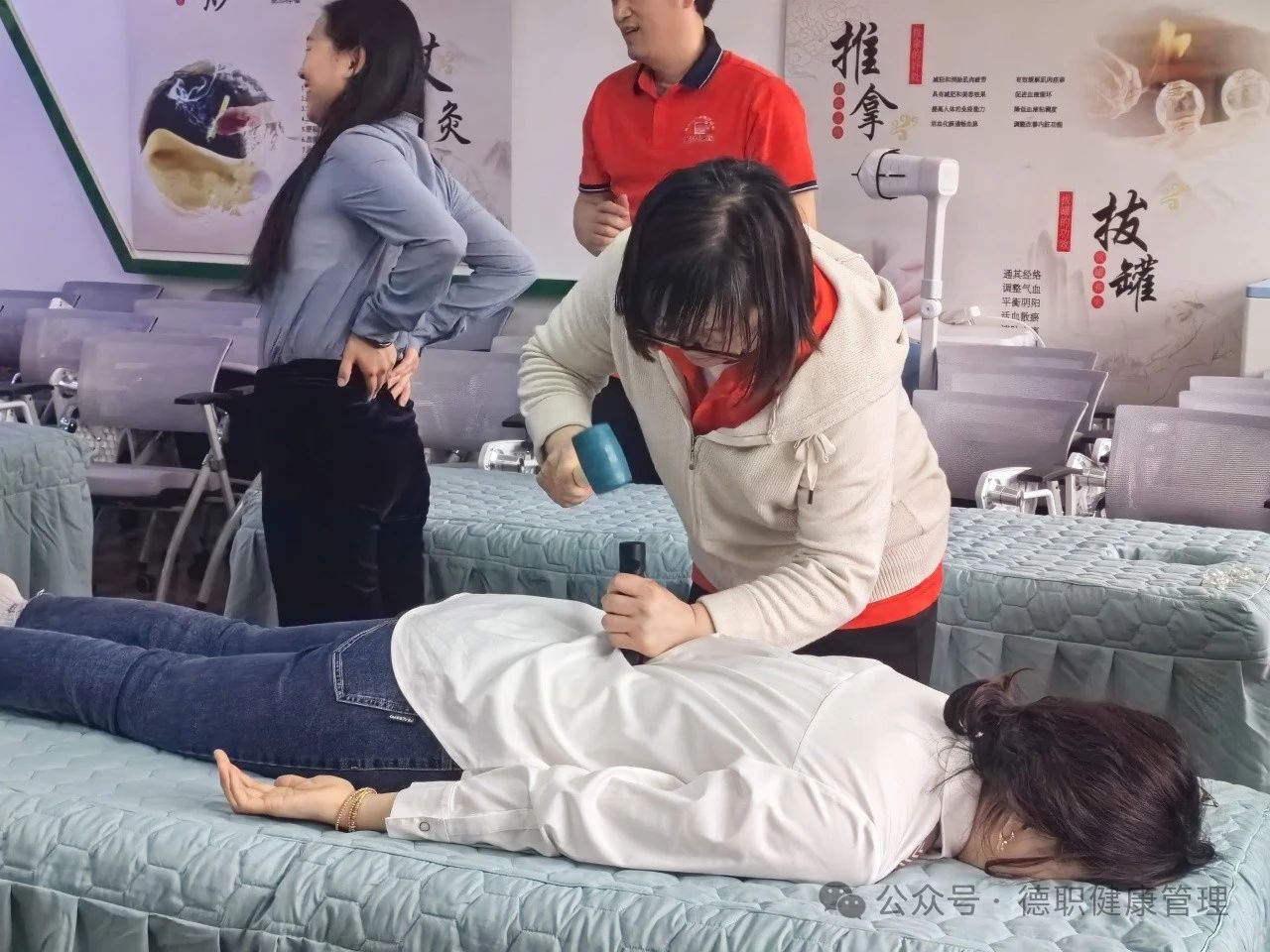 为传承和弘扬中华优秀传统文化,普及中医药健康养生知识,增强师生健康管理意识,beat365英国官网网站特邀五季世家(山东)健康科技有限公司“经络叩击疗法”传承人入校,于4月18日下午开展了非物质文化遗产——“经络叩击疗法”科普体验活动。