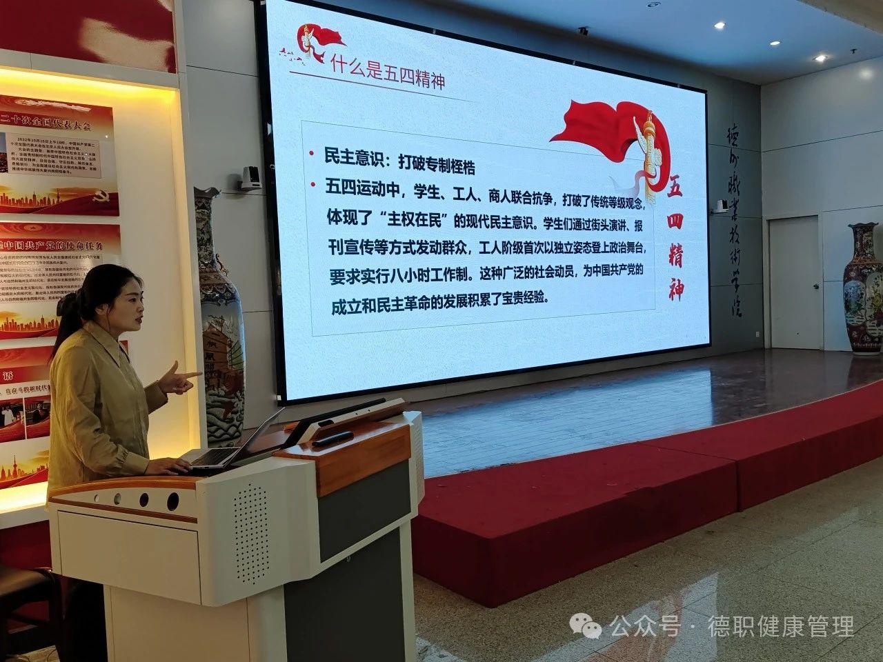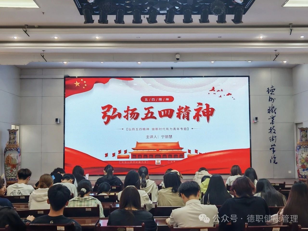 座谈会由宁丽慧老师主讲,她以“五四”运动的历史背景、重要意义为切入点,深入且全面地阐释了“五四”精神的丰富内涵。宁老师旁征博引,结合历史事件和时代发展,为同学们上了一堂生动的思政课,让大家对“五四”精神有了更深刻的认识。