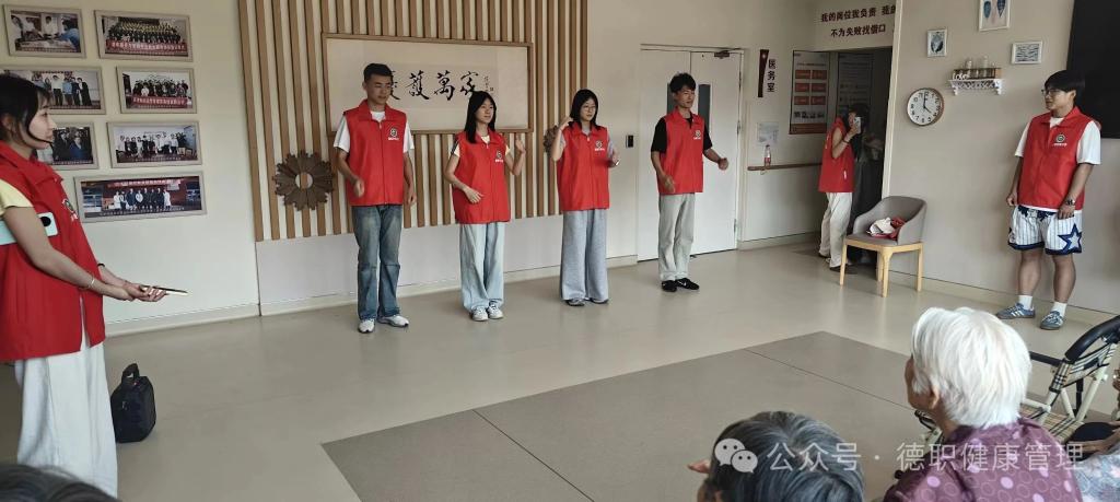 5月29日,党员老师携手金晖健康志愿服务队走进十二里庄的德州优护万家服务中心,活动现场精心编排的节目轮番上演。志愿者们深情演唱,营造出温馨热烈的氛围,老人们脸上洋溢着开心的笑容;beat365英国官网网站志愿者发挥专业优势,带领老人们一起做手势舞,老人们专注学习,眼睛里闪烁着认真的光芒。表演结束后,部分志愿者们围坐倾听老人们讲述往昔的奋斗故事与对家人的思念;志愿者还主动拿起扫帚、抹布打扫房间、整理物品,让服务中心环境更加整洁温馨。