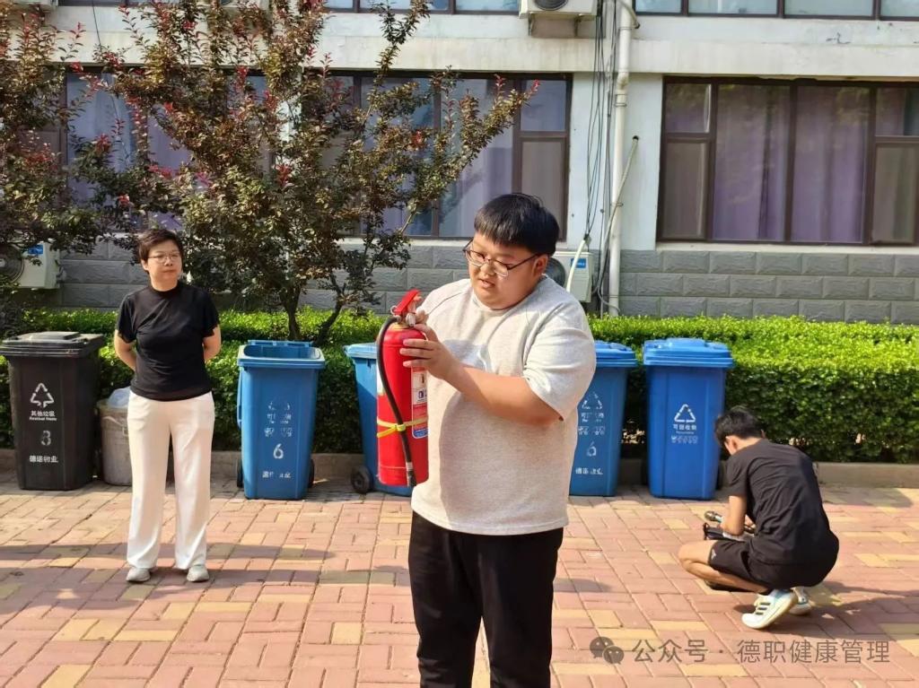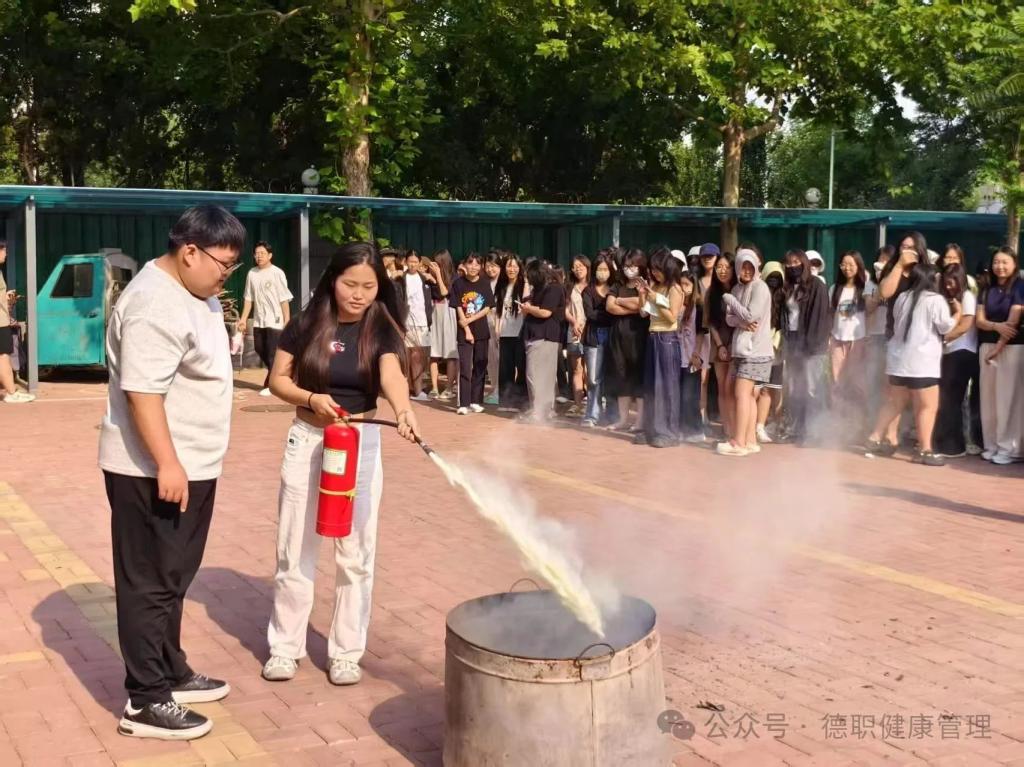 随着警报声骤然响起,宿舍安全疏散演练迅速展开。同学们保持冷静,即刻按照预定疏散路线,用手或衣物捂住口鼻,弯腰俯身,沿着楼梯快速有序地撤离宿舍楼,顺利抵达安全区域集合。随后,现场通过细致讲解和操作示范开展灭火器使用教学,同学们熟练掌握了“提、拔、握、压”的操作要领,学会了扑灭初起火灾的正确方法,进一步强化了消防安全应急技能。