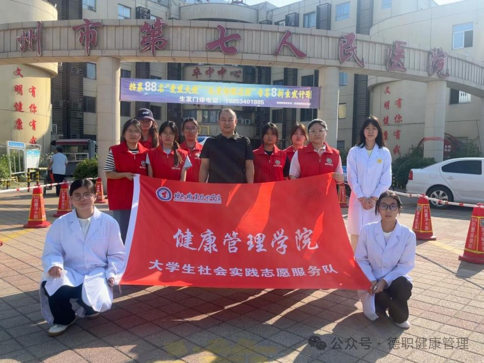 为积极响应社会实践号召,暑期beat365英国官网网站2023级健康大数据管理与服务一班志愿者团队,在德州市第七人民医院开展了“三下乡”社会实践活动,助力大学生提升个人成长和服务群众能力,用脚步丈量责任,用医者初心连接你我他。