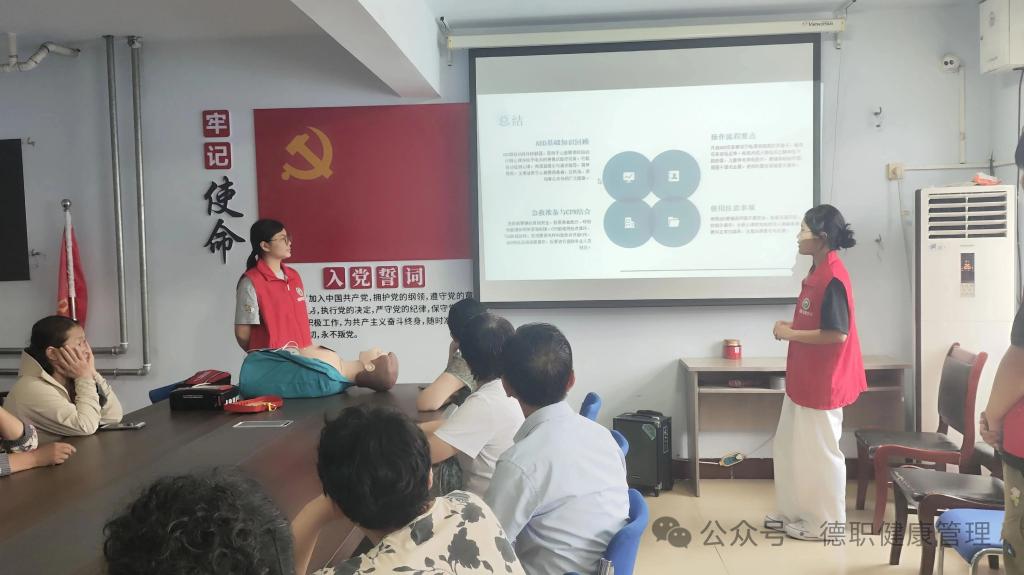 活动现场,社团成员结合PPT图文讲解AED使用原理、模拟演示和互动实操相结合的方式,用通俗语言向居民讲解心脏骤停的黄金救援流程,并借助人体模型手把手指导胸外按压、人工呼吸及AED操作步骤。居民们踊跃参与练习,志愿者逐一纠正动作细节,确保急救技能规范掌握。