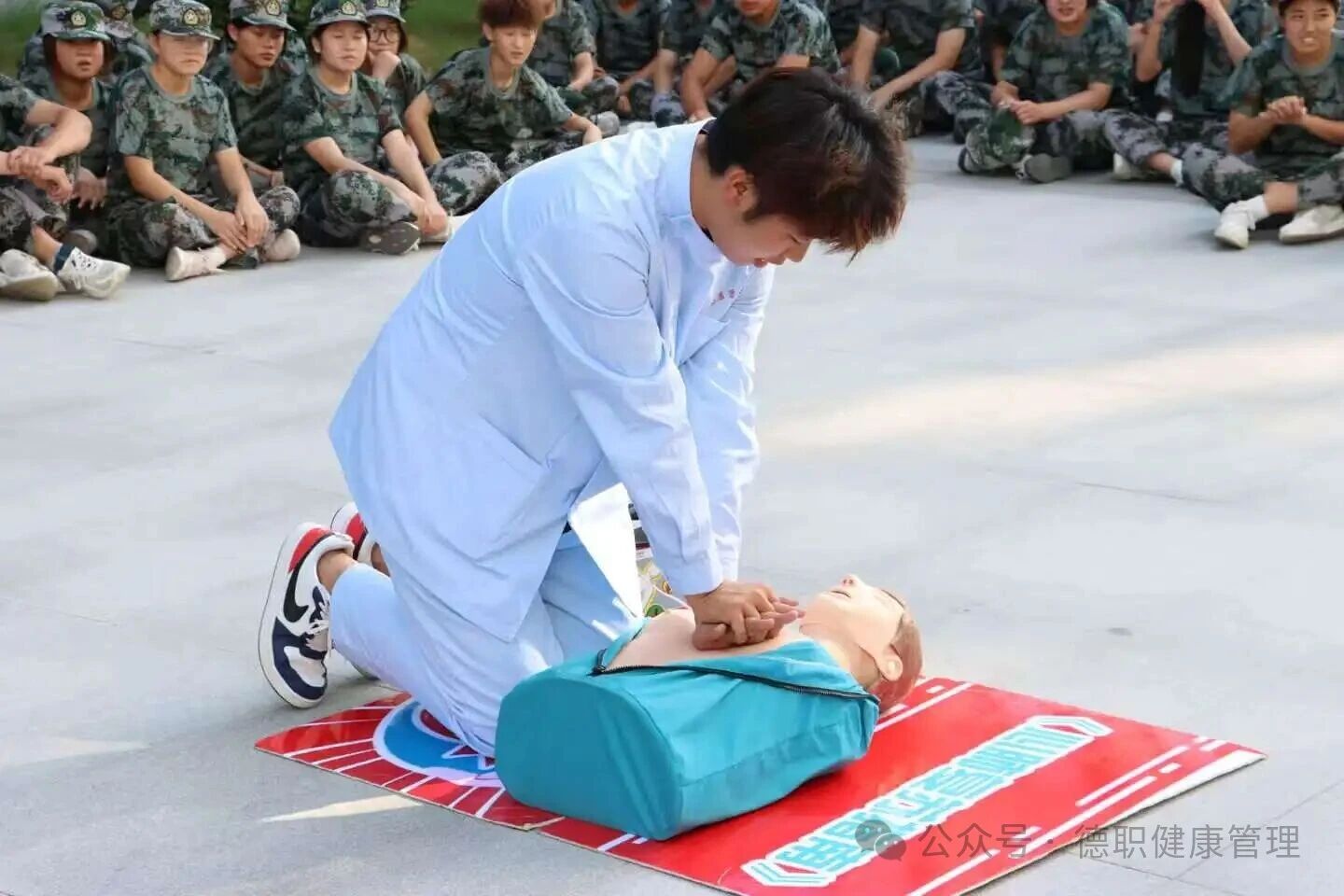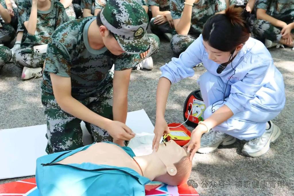 为切实提升新生应急救护能力,筑牢校园安全防线,9月9日下午,beat365英国官网网站组织AED守护者联盟社团,深入各系院军训方队,开展AED使用及心肺复苏技能专项培训,将实用的急救知识送到新生身边。