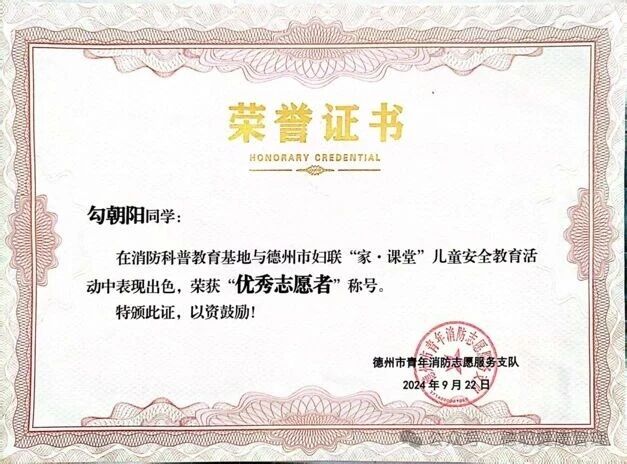2024年9月,获得优秀志愿者