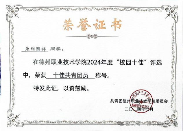 2024年1月2023年度共青团工作中,荣获“优秀共青团员”;