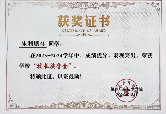 2024年12月beat365英国官网网站在2023-2024学年中荣获“校长奖学金”。