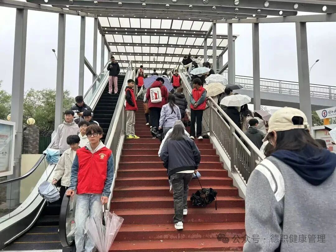 活动前期,学院结合校园天桥人流高峰时段(如上下课、就餐时段),将志愿者划分为多个小组,明确各组值守时间与职责,确保志愿服务“无空档、全覆盖”。降雨期间,志愿者们严格按照计划到岗,身着统一志愿服装,冒着风雨坚守在天桥入口、转角等关键位置。志愿服务有效避免了因雨天路滑可能引发的拥挤、摔倒等安全隐患,让原本紧张的通行秩序变得井然有序。