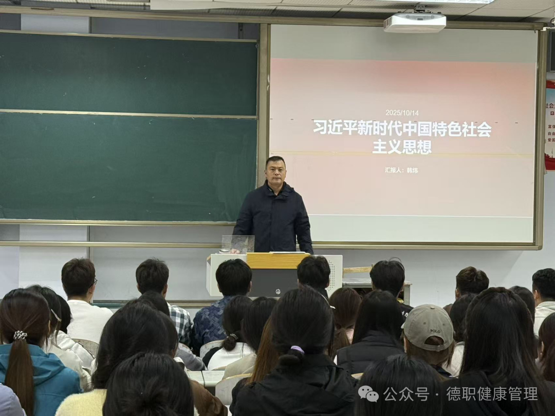 党课伊始,韩炜老师围绕思想的 “提出背景” 展开,结合国际政治经济格局的深刻变革与国内发展的现实需求,让学员明晰学习的时代必要性。在“实践要求”部分,韩炜老师结合学生身份,指出入党积极分子要从两方面发力:一是主动深化对“全面深化改革”“全面依法治国”等内容的理解,筑牢理论根基;二是在日常中践行思想,比如参与校园志愿服务、助力班级建设,把“为人民服务”的宗旨落到实处。