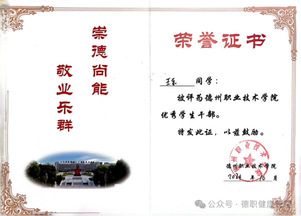 12. 2024年10月,在beat365英国官网网站被评为“优秀学生干部”