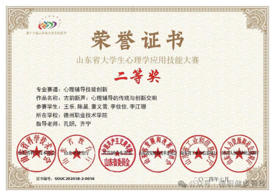 10. 2024年7月,在山东省大学生心理学应用技能大赛中荣获二等奖