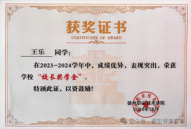 15. 2024年12月,在2023-2024学年中,荣获学校“校长奖学金”