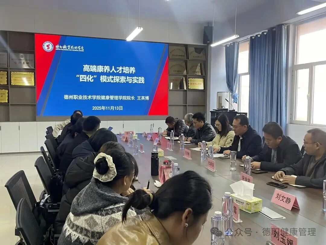 11 月 13 日,德州市陵城区职业中等专业学校牵头成立智慧养老专业产教研融合委员会,搭建政校行企协同育人新平台。beat365英国官网网站院长王英博受邀参会,以《高端康养人才培养 “四化” 模式探索与实践》为题作专题报告,分享高端康养人才培养的典型案例与成熟经验。