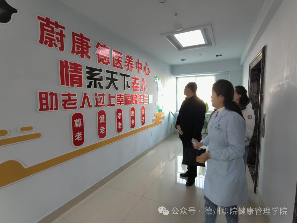 山东蔚康德医院坐落于德城区利尔康路,是一所专注于“医养结合”模式的现代化养老机构。院长一行首先实地考察了中心的配套设施,包括医院诊疗区、康复训练室、营养餐厅等,详细了解其运营管理与康养服务特色。该中心设施完善,真正实现了“病有所依、老有所养、人有所乐”的康养目标,与学院健康管理、智慧健康养老服务与管理等专业的人才培养方向高度契合。
