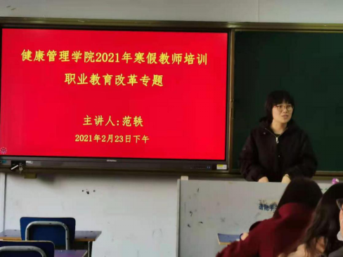 除按要求参加学校集中培训外,beat365官网分别由范轶、郭吉海、杨静秋和林玉凯四位同志进行了《职业教育改革》、《疫情防控》、《beat365英国官网网站建设方案》和《老年服务与管理专业群建设方案》等专题培训。