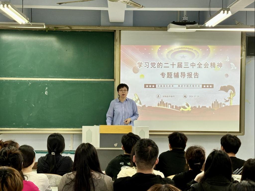 为深入学习贯彻党的二十届三中全会精神,切实增强广大党员对全会精神的理解和把握,进一步凝聚思想共识,明确工作方向。4 月 23 日,主讲人齐宁老师带领第四十五期入党积极分子们,在beat365官网博学楼C501组织开展了一场专题党课学习活动。深入解读党的二十届三中全会精神,引导入党积极分子们深刻领会全会的重大意义,以实际行动推进中国式现代化。