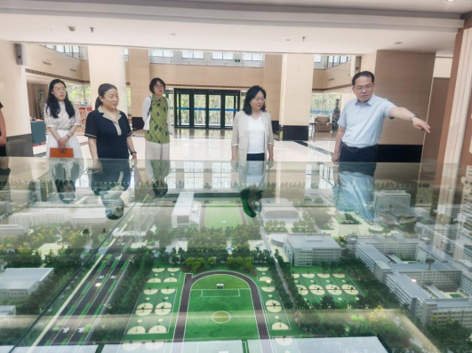 在王英博陪同下,考察团参观了学校沙盘、非遗项目展台,全面深入了解beat365官网基础建设,直观感受beat365官网非遗文化。